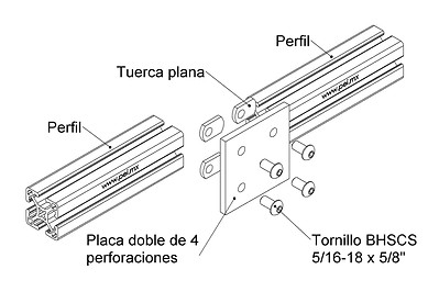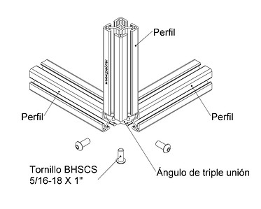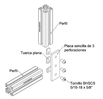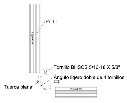 Posteriormente se deslizan los perfiles por las hileras de tornillos y tuercas, posicionándolos donde se desee.
