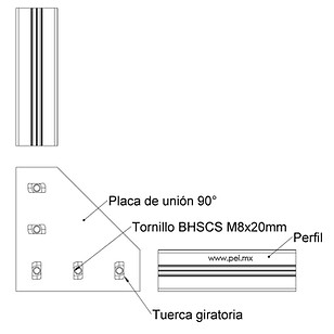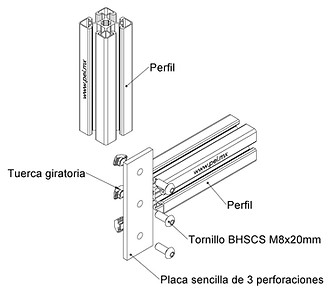 Se instala pasando el tornillo por los agujeros del ángulo, colocando la tuerca en el extremo del tornillo.