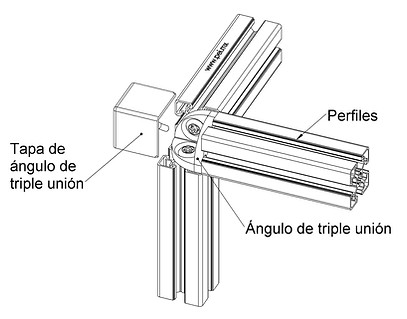 Pensado especialmente para la unión de tres perfiles en una esquina.