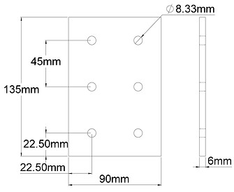 PLACA DE UNIÓN 90º, DE 5 PERFORACIONES
