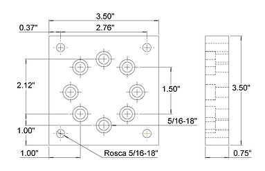 placa, cuatro tornillos 5/16-18 a través de los orificios de la placa y la base.