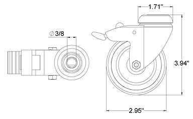 RUEDA GOMA 75MM (3”), PLACA, FRENO TOTAL, CARGA MAX. 150KG