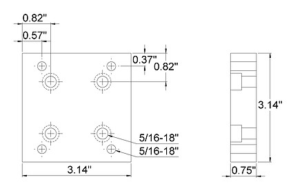 Base de aluminio especial para el montaje de patas en perfil de 3.0” x 3.0”.