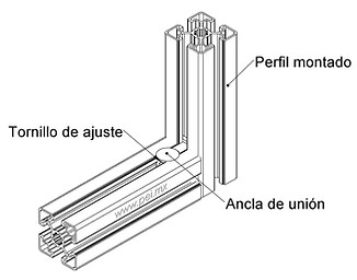 Se ajusta con el tornillo de tal manera que pueda colocarse entre el extremo del perfil base y la tuerca, la ranura lateral del perfil a montar.