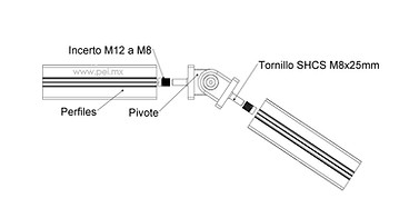 Se coloca el tornillo por la parte interna del pivote hacia el perfil, empatando con la ranura central del perfil.