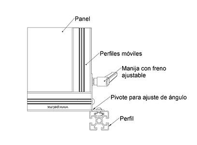 Para conectar perfiles de aluminio a un ángulo ajustable; puede ser trabado con una manija de freno.