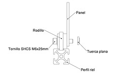 Se coloca el tornillo a través del ojillo del rodillo, la arandela y la ranura del perfil. Se ajusta el tornillo con una